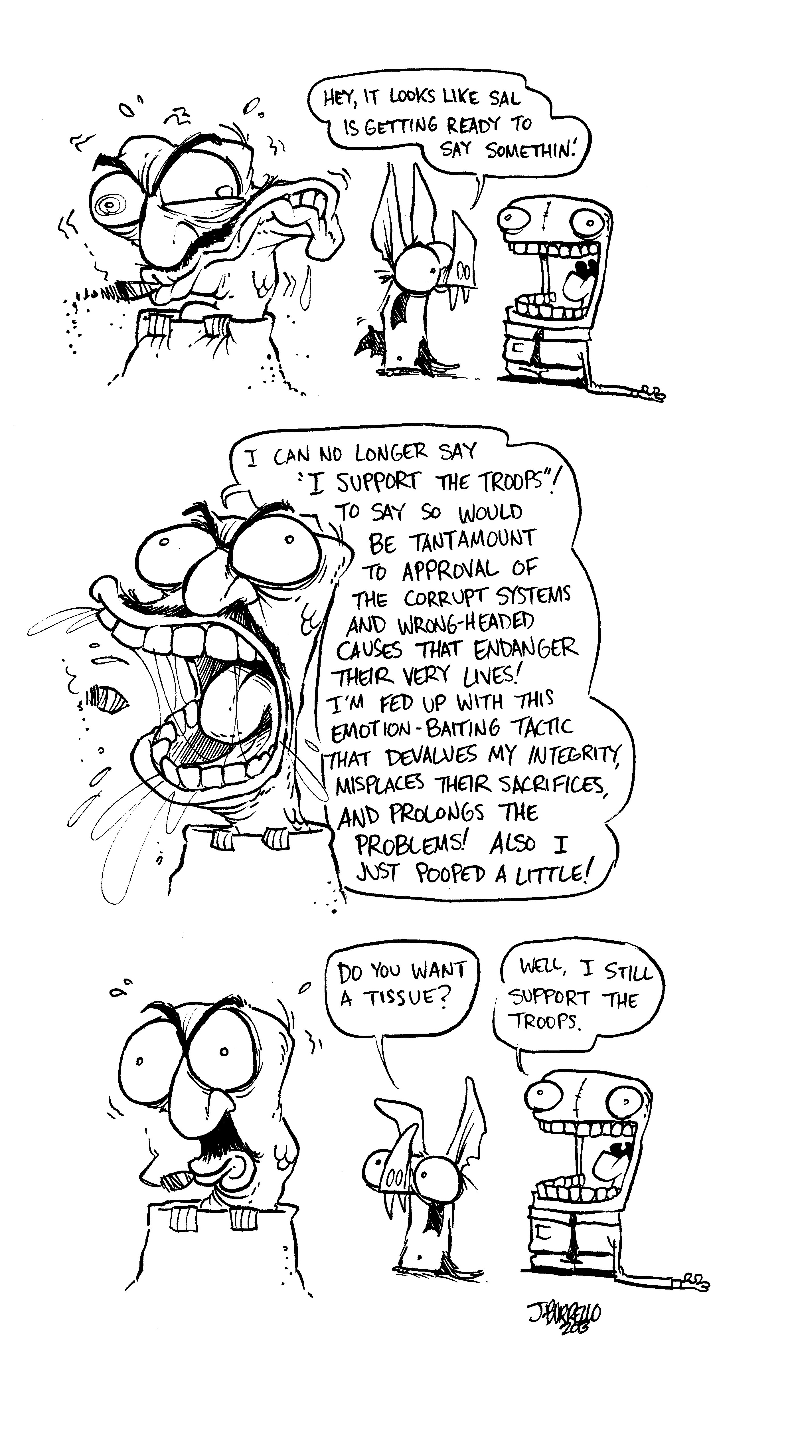 Out of Tissues Posted on August 7, 2013August 7, 2013 by J. Burrello George Carlin and Louis C. K. both said far more eloquent and funnier things on the subject of wars and our dogmatic devotion to concept of “the troops,” but for whatever it’s worth… Share this: Click to share on Facebook (Opens in new window) Facebook Click to share on X (Opens in new window) X Click to share on WhatsApp (Opens in new window) WhatsApp Click to share on Tumblr (Opens in new window) Tumblr Click to share on Reddit (Opens in new window) Reddit Click to share on LinkedIn (Opens in new window) LinkedIn Click to email a link to a friend (Opens in new window) Email Click to share on Pinterest (Opens in new window) Pinterest Like Loading... Related