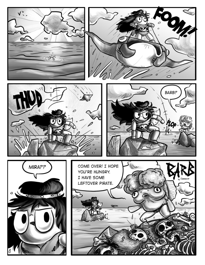 Having vanquished the mollusk god Cepha, Barb departs the underwater kingdom of Submarinara. Once topside, she finds a familiar face.
