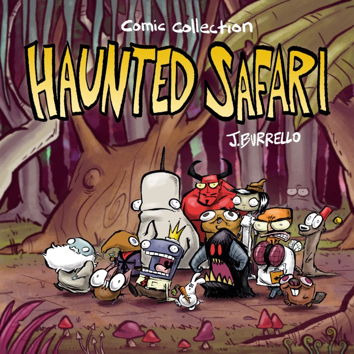 Monster’s Paradise is a hefty tome of satirical comics (225 pages!) featuring the Haunted Safari denizens going on a myriad of quirky misadventures. This book was a very limited run, however, it is available for purchase at Phoenix Books NDG and Crossover Comics (both in Montreal) or through Stripe link HERE.