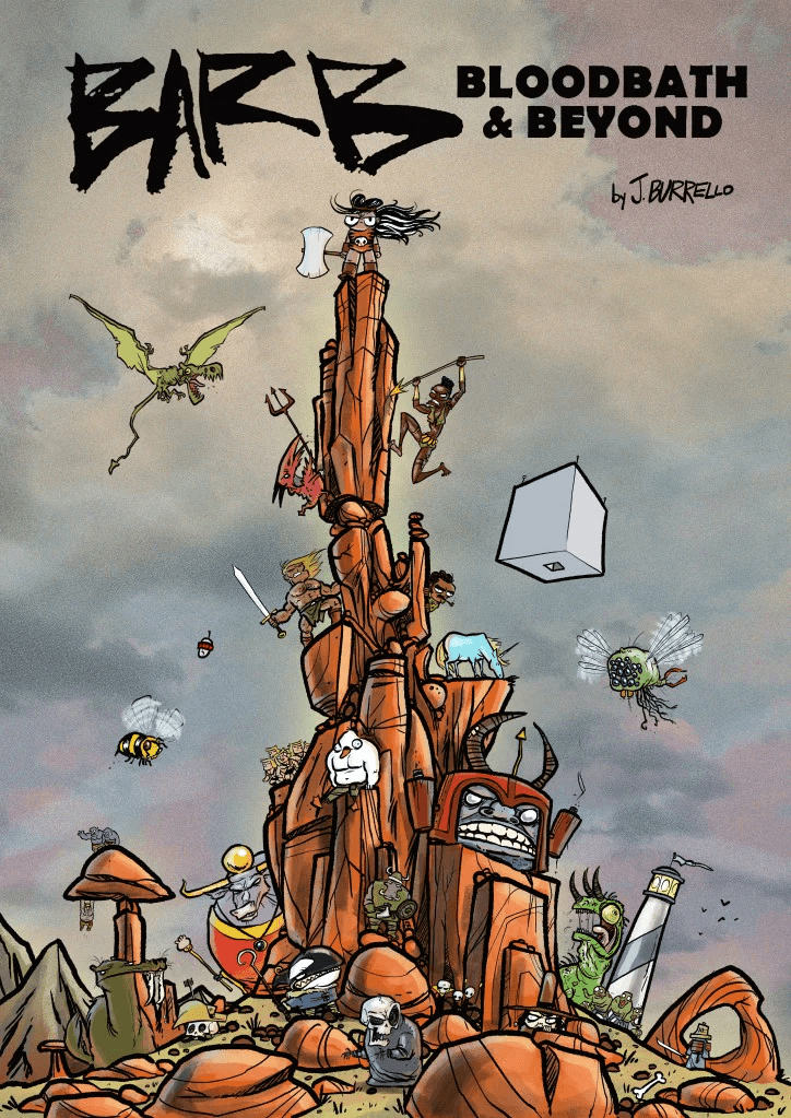 Barb’s violent adventures continue through hell and back and into interdimensional cow realms in Barb, Bloodbath & Beyond (2023). [Out of print.]