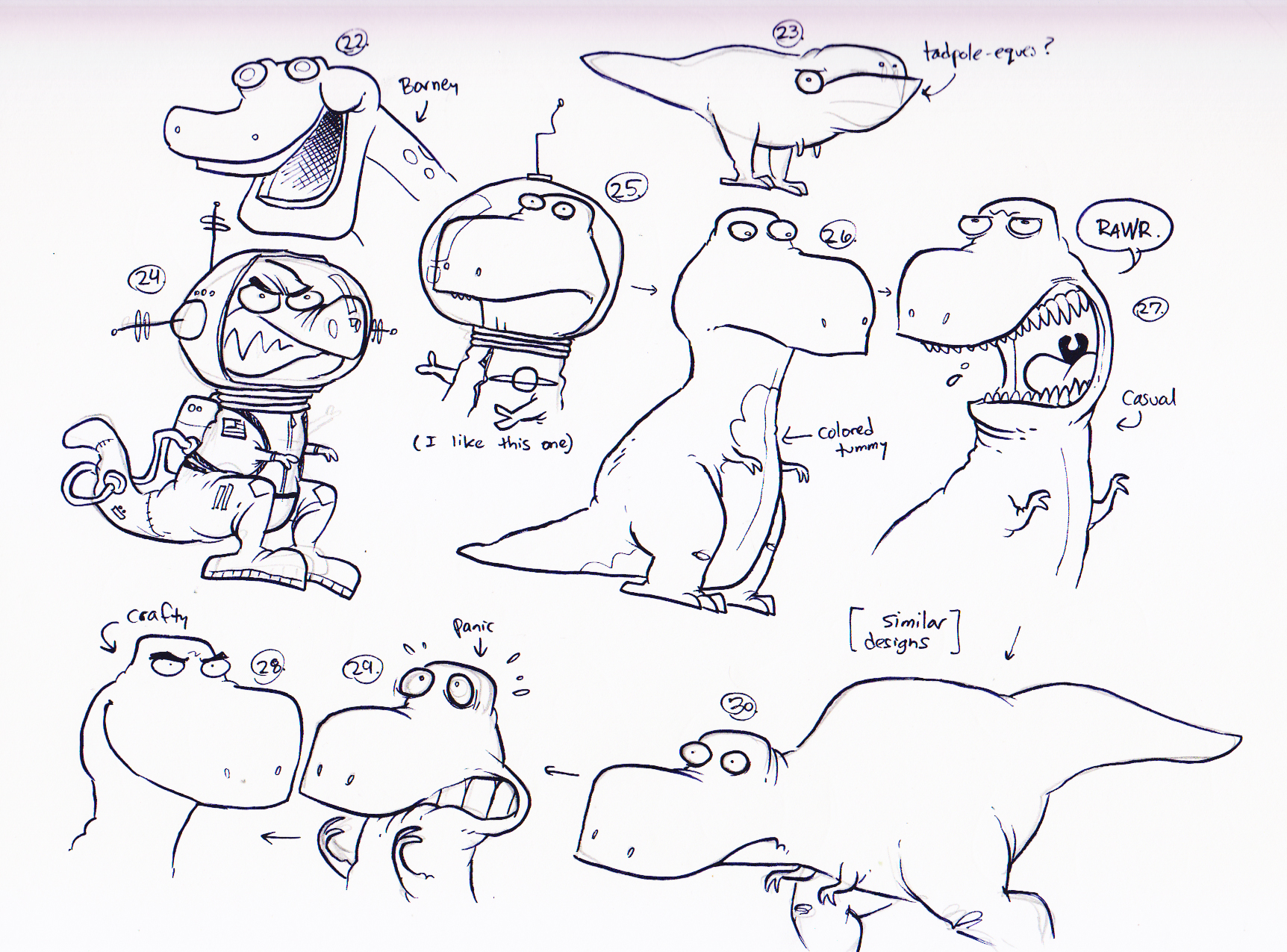 These were character designs for a mascot that just wasn’t to be. The client wanted a dog or dinosaur and I don’t think the project ever got beyond this stage. Yeah, a lot of cartooning is just doing this stuff.