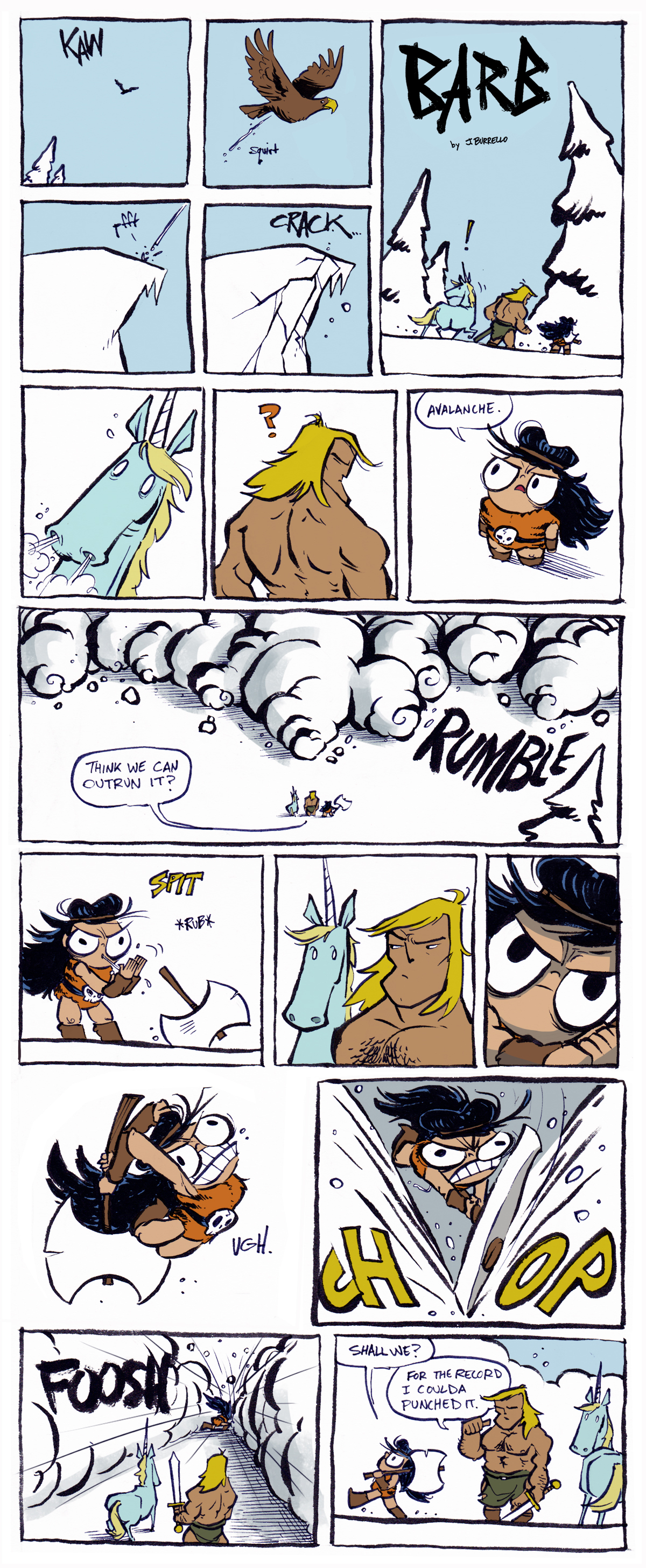 The Book of Barb is happening. It’s a collection of two years’ worth of Barb’s comic adventures. It’s met it’s goal (meaning we can cover the printing costs), but the Kickstarter campaign is still going. This is a limited time run, so if you want a copy of the book for yourself (or someone you know), back the project. More backers means more book orders. If you dig Barb, Kornog, Anthrax, SkΓΌllgorg, and the rest, then share the Kickstarter to get more eyes on it. I raise a goblet of grog to you!
