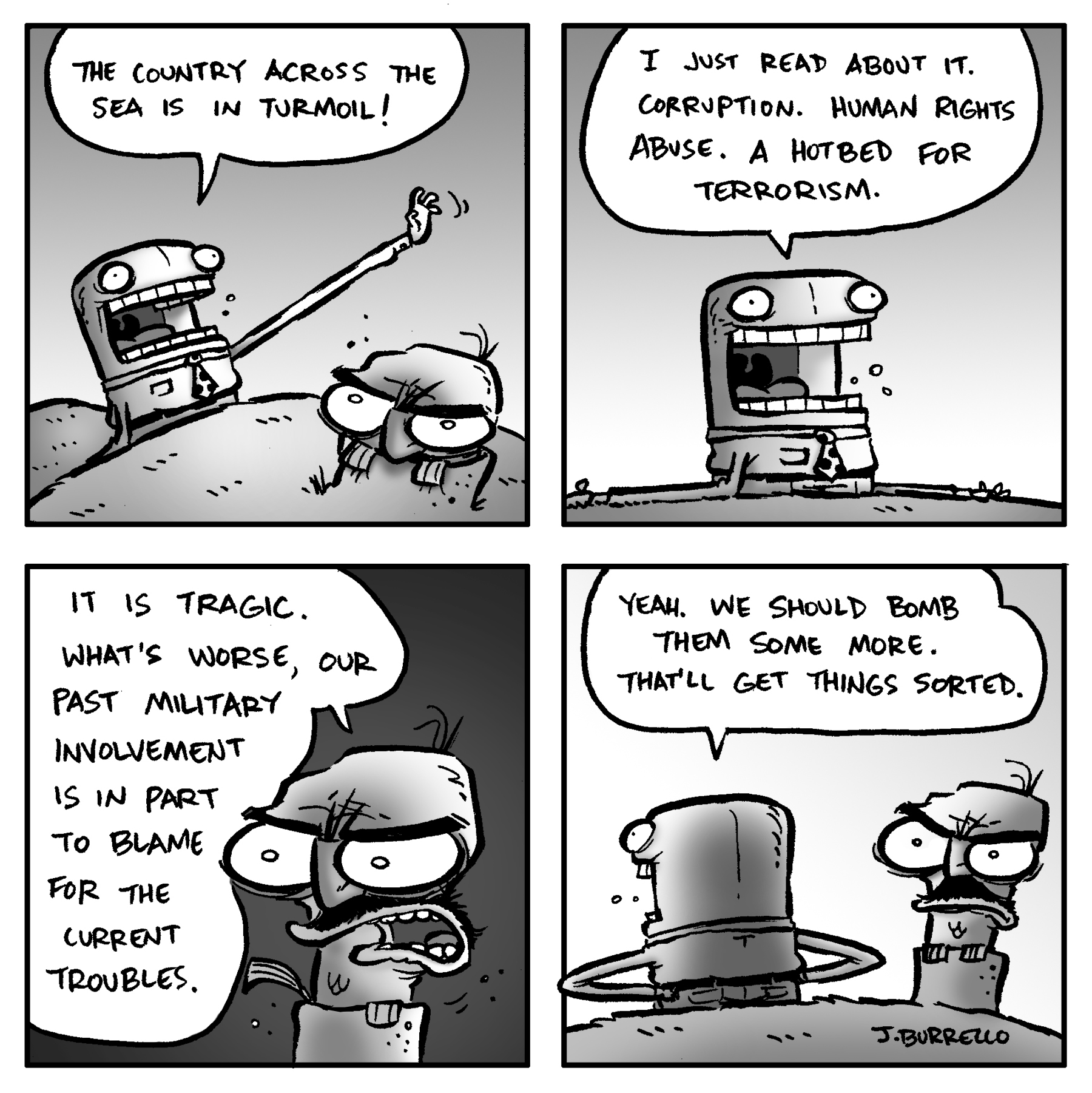 Propaganda contains self-contained jokes and jabs and the much longer political time-travel saga concerning Mayor Clown Hitler’s rise to power. It also features the lighter mini-story of Blinky’s diet.