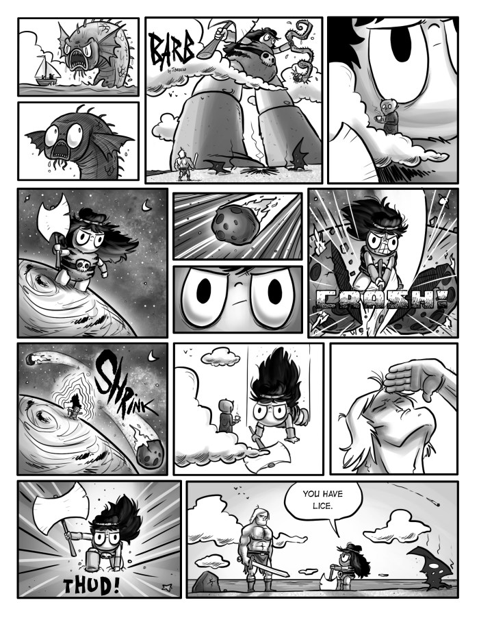 Barb has united the clans of the Lice and the Crabs, battled the denizens of Micropia, vanquished the succubus Belladante, and become a giant. Not bad for a Monday.