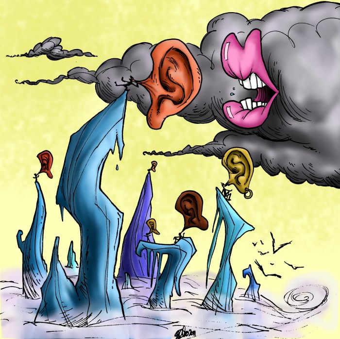 Go hear it on the mountain. Perhaps a touch inspired by Seuss, Dali, and Gilliam.