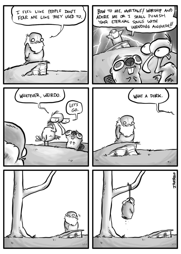 Toddspeed features more dark whimsy as well as the first appearances of Neil NeGrasse Bison and Tim the pervert tree. It also includes Spatsby’s near death experience mini-story.