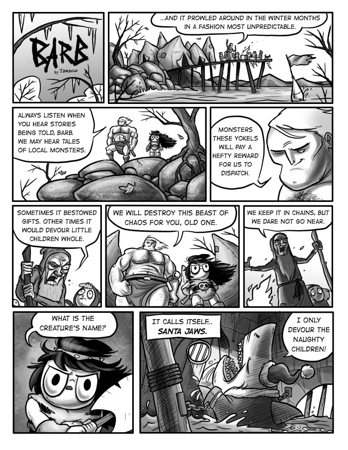 Free Santa Jaws Posted on December 13, 2019 by J. Burrello Episode 31 Between Santa Jaws and Mira the Man-eating Mermaid, Barb seems to have a noticeable disdain for creatures kept in cages. SUPPORT BARB ON PATREON