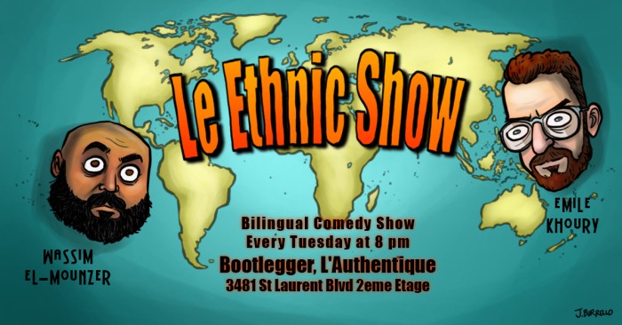 A classy bilingual comedy show in Montreal that was kind enough to have me make their banner. Check out their Facebook page (https://www.facebook.com/leethnicshow/). Come to a show. Bring a date.