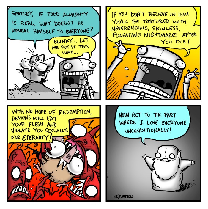 Unconditional Love (but with conditions) Posted on August 6, 2018 by J. Burrello Facebook Fan Page Printed collection out now!Β Straight from the Pit of Hell: a Blinky and Sal CollectionΒ is available on Amazon.
