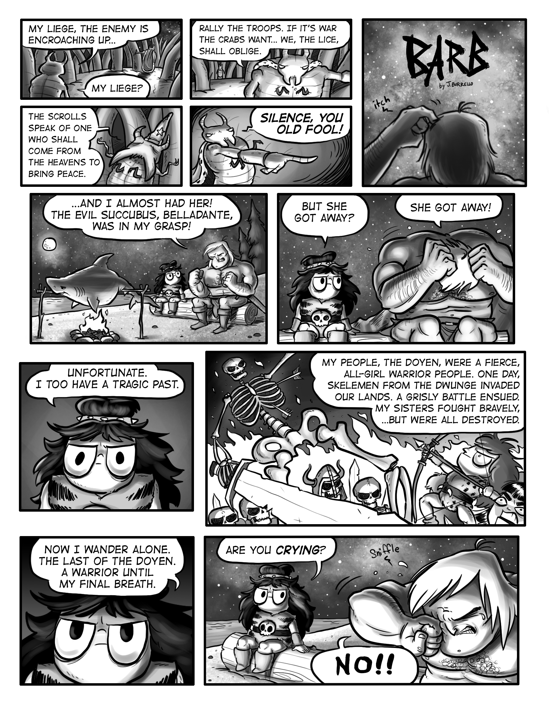 Barb and Kornog share tragic backstories. Also some lice confer on the eve of war.