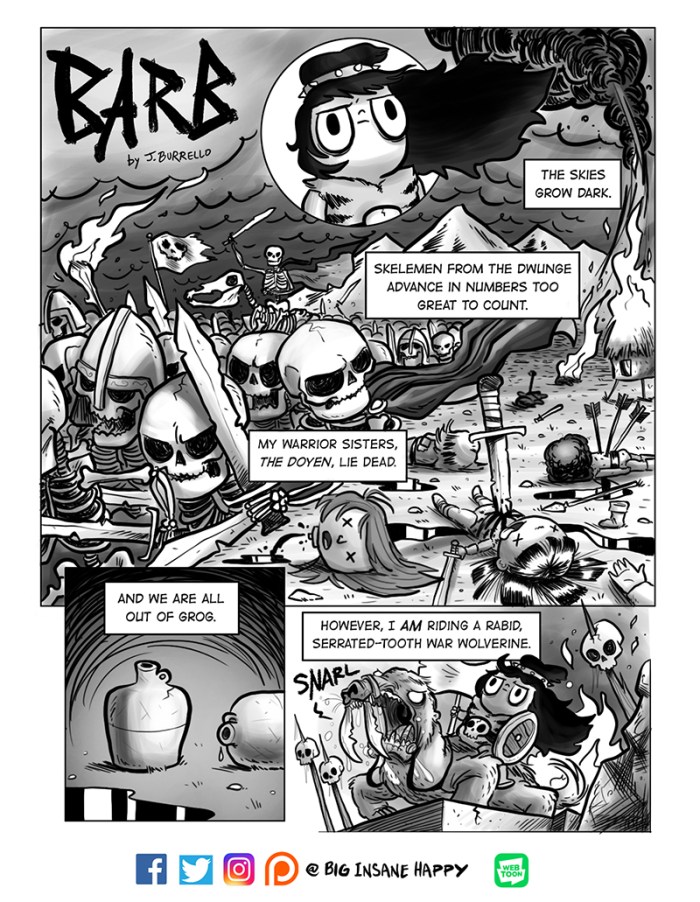 The Skelemen army is vanquished…at least for now. Barb is the sole survivor. The last of the Doyen.
